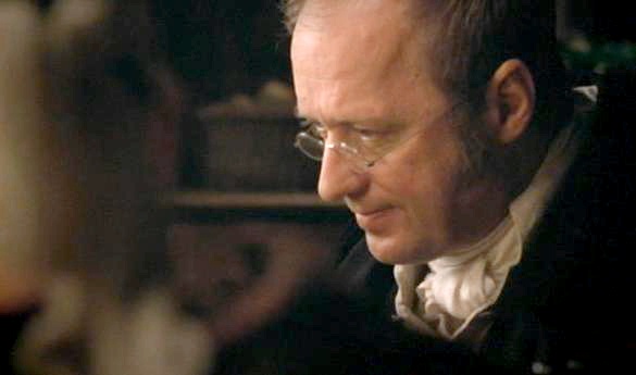One of the film’s historically significant scenes shows Jane’s meeting at Carlton House in 1815 with Rev. James Stanier Clarke, the Prince Regent’s librarian. Jane’s favorite brother, Henry (right in movie), lived in London at the time, where he worked as a banker and acted as Jane’s agent. At this prolific juncture of her life, Jane’s writing