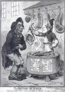 Wartime Britain went hungry between 1789 and 1821 but it was also the age of excess. The average weight of an ox went from 370lb to 800lb (186kg to 363kg) and the Army swelled from a force of 39,000 in 1793 to 264,000 by 1815. The cartoonists who used the Regent’s corpulence as a metaphor for his kingdom’s corruption clearly got it right.