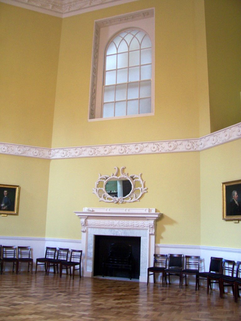 As soon as Catherine Morland and the Allens arrived at the Upper Rooms, Mr. Allen excused himself to play cards. Tables were set up in the Card Room. The Octagon Room, a handsome domed room, served as a passageway to the ball-room, the card-room, the tea-room, and the vestibule, through which the assembled company could circulate, flirt, dance, and gossip. The Octagon Room would also serve as a meeting room or music room, as in Persuasion when Lady Dalrymple hosted a concert. (See a site plan of the Assembly Rooms here.)