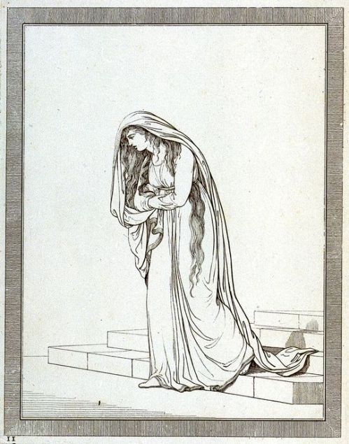 “Nothing was more curious than the faculty that Lady Hamilton had acquired of suddenly imparting to all her features the expression of sorrow or joy, and of posing in a wonderful manner in order to represent different characters. Her eyes alight with animation, her hair strewn about her, she displayed to you a delicious bacchanale, then all at once her face expressed sadness, and you saw an admirable repentant Magdalene.” – Elizabeth Vigee-Lebrun