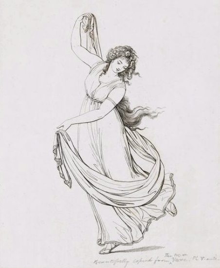 The black and white Rehberg illustrations featured in this post and commisioned by Sir William, are drawn with simple, graceful and classical lines and freeze a particular “Attitude”. Their idealistic poses are among the few visual reminders that remain of Emma, Lady Hamilton as a performance artist. As the images show, Emma was a voluptuous, well-formed and beautiful woman. Her love for food and drink was no secret, and she would gain a substantial amount of weight over time, until at 47 she was described as being fat. But for a number of magical years, art, performance and beauty combined to create a series of tableaus that are still remembered today for their freshness and originality.
