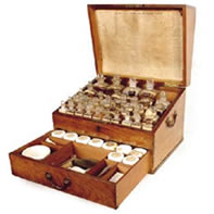 Apothecaries were often the only doctors available in a rural community, and they would take their supplies with them in portable apothecary box. Mr. Jones, Jane Bennet’s apothecary, must have dispensed his solutions from a similar box.