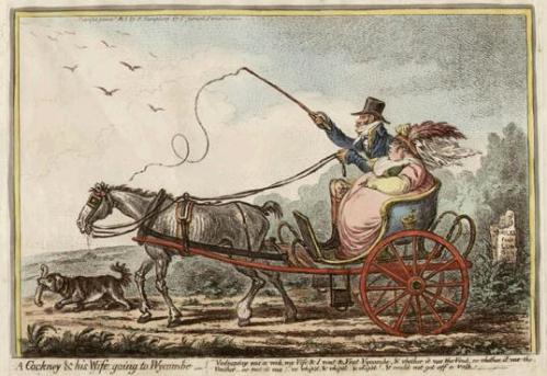 This cartoon by James Gillray suggests that the Cockney in question is an apothecary. Note the mortar and pestle symbol on the side of the carriage.