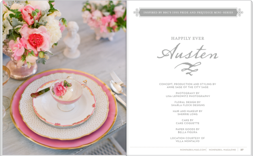 Look how perfectly chosen the flowers, candies, clothes and reception place are! See the entire article, “Happily Ever Austen”, here at this link!