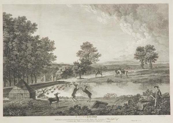 Driving the stags, a view of Lyme Park, 1745. Engraved by F. Vivares after a painting by Thomas Smith. Notice the differences in details between the print and the painting.