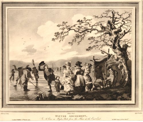 Winter Amusement, Hyde Park, after Ibbetson, 1789. Note the bare feet on the young child in rags. (Foreground)