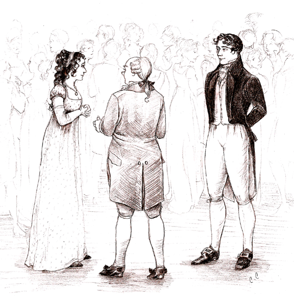 “Some husbands would be injured at such an admission, but not I; after all, I did not know that you were my future wife. I remember that I was wandering about the Rooms like a lost soul, having no acquaintance there. The master of ceremonies, Mr. King, took pity upon me and asked if I would like an introduction to a clergyman’s daughter who was in need of a partner. In Christian charity, I could not decline; though from my past experiences of ladies described as ‘clergymen’s daughters,’ I expected to be presented to an elderly spinster with a squint. You may imagine my relief when Miss Morland turned out to be rather a pretty girl, and I considered myself fortunate that no other gentleman had already claimed the honour of dancing with her.”