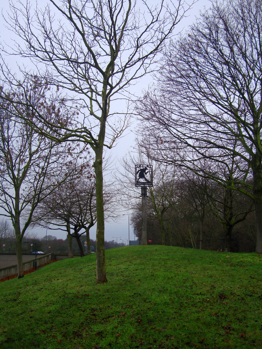 Eureka! I have now seen the sign. Unfortunately there was a traffic accident on the roundabout today, so I was moving very slowly and had time to look around. I don’t know how I’ve missed it for the past 30 years. Thank you very much Tony.
