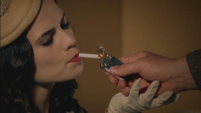 One can believe that a man can lose his head, senses, and heart to a woman as beautiful as Freya (Haley). She’s smart, totally in love with her man, and too good to be true. Plus, she smokes as much as Logan. (Some of the scenes were so Bette-Davis-1930’s, where the man offers to light the woman’s cigarette, and so much can be said cinematically through the gestures of a cupped hand touching the other and looks of longing behind curtains of smoke.)