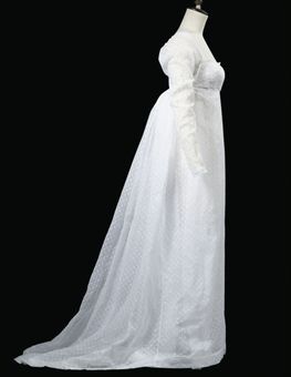 Does anyone know how they would go about replacing the damaged fabric? When I look at the muslin gown, it would seem like you would have to replace the whole back of the dress or at least the skirt for it to look well. Would they have had that much extra fabric? Might they have simply altered the skirt to eliminate the train, or would all gowns have had trains in 1800? (I have seen pictures of gowns with skirts coming to just below the ankles without trains, but am not sure of the timeframe.)