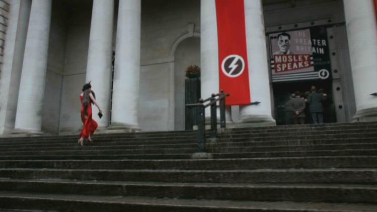 Bored and rebellious are not a good combination in the mind of a none too bright woman. Lady Percie races up the stairs to join an unsuspecting Harry at a far right rally.