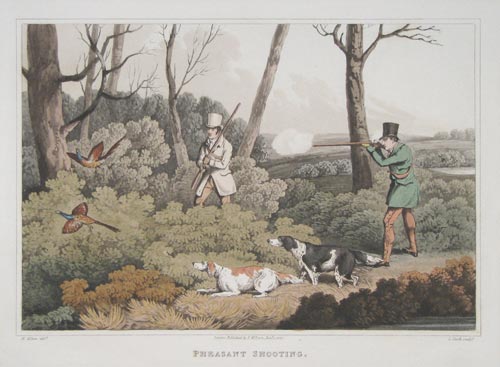 Hunting for pheasant occurred principally from November through January. (Just before the Upper Crust returned to London for the Season.) Locals guarded their best fowling grounds fiercely, even though game was still plentiful in England and Scotland during the 18th century. Hunters not only hunted for sport, but for food as well, so hunting had a practical nature.