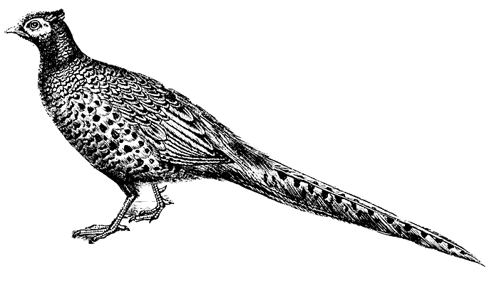 The Common Pheasant (Phasianus colchicus) was brought over by the Norman’s in the eleventh century and soon dispersed around the country, being introduced to parts of Wales, Scotland and Ireland in the late sixteenth century. By the early nineteenth century they had become the most important game bird. – Birds of Britain