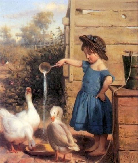 It is in the goose’s nature to flock, making domestication of this intelligent, rather biddable creature easy. Grimm’s fairy tale includes a story of a princess turned into a goose girl, and sentimental 19th century paintings exist of young girls looking over their flock of geese or caring for them.