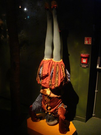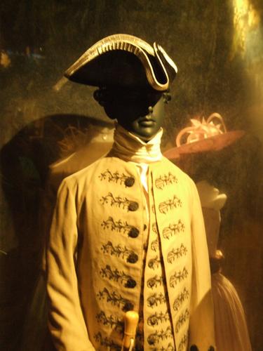 The installation at The Museum of London recreated how the costumes in Vauxhall would look at night. Hats in this exhibit by contemporary milliner Philip Treacy.