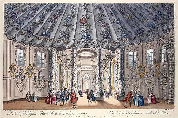Interior view of the elegant music room at Vauxhall Gardens. Engraving by H. Roberts, 1752. Image @1st Gallery.com