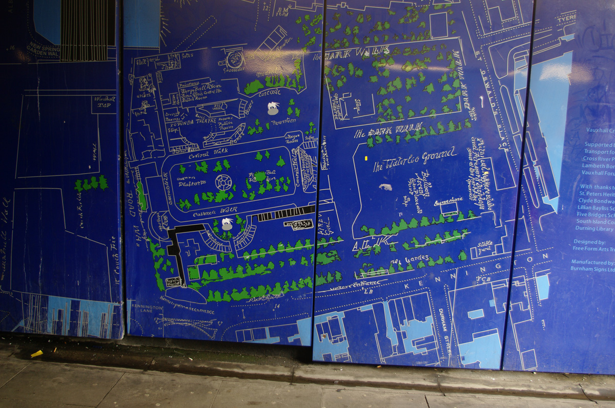 Recently I was looking at an old map showing the layout and design of Vauxhall Pleasure Gardens. I could see Kennington Road marked clearly on the map bordering the southern border of where the pleasure gardens had been. It showed the road curving slightly. It struck me that I know that part of Kennington Road well. Vauxhall is part of the London Borough of Lambeth. My wife Marilyn worked for over ten years in schools in Lambeth and often got off the train at Vauxhall and walked to her inner city school in Walnut Tree Walk next to the Lambeth Walk that is of Charley Chaplin and that song, fame. We decided that we would go for a walk around Vauxhall and see if we could find any signs or remains of the pleasure gardens.