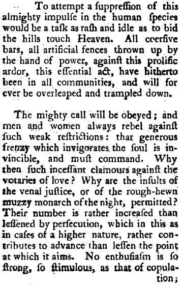 The introduction to the 1789 publication (see below) provides a shameless rationale for the “votaries of love.” The writer ignored the fact that for most of these ladies life was hard and bitter.