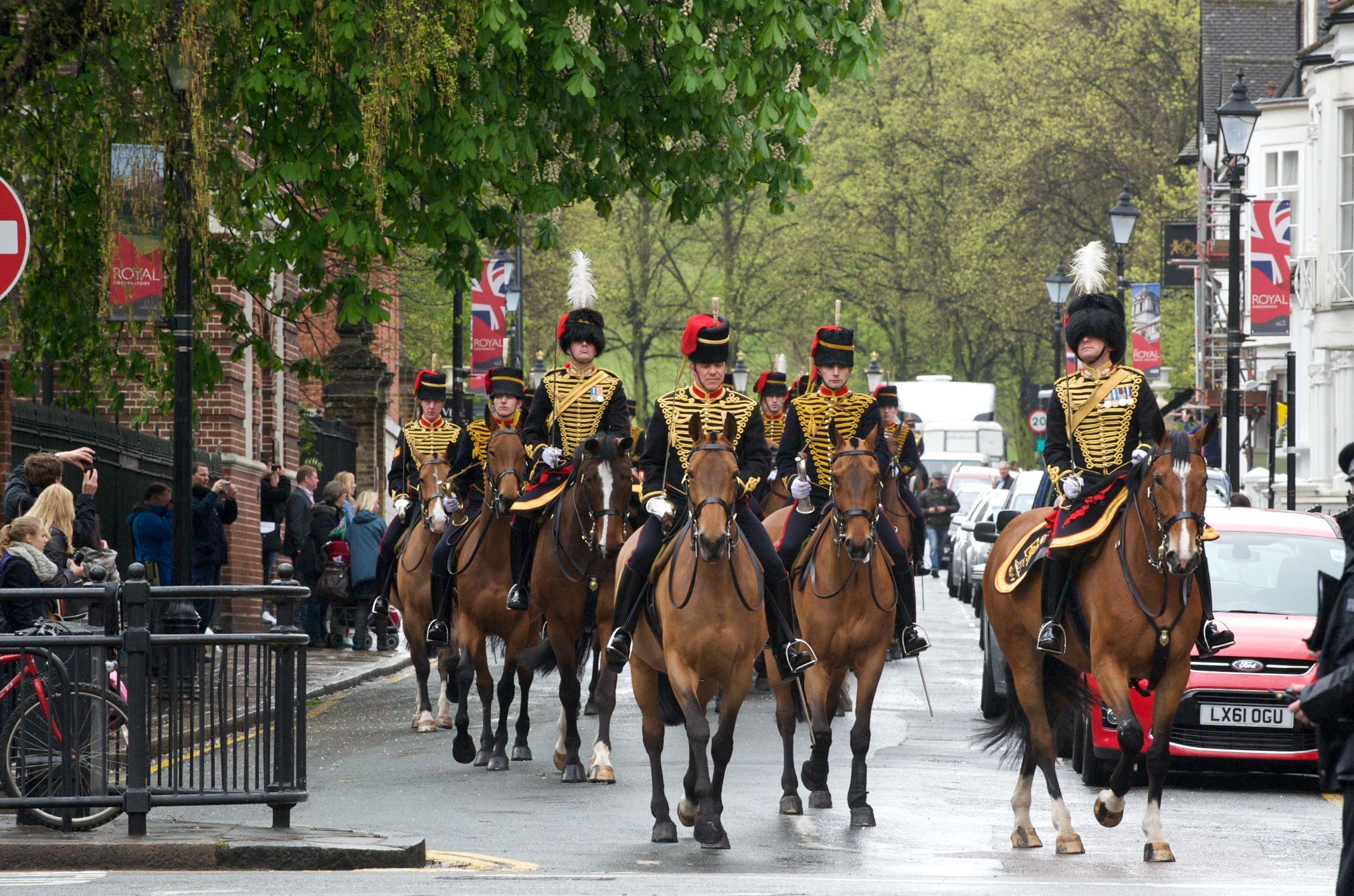 The King’s Troop Royal Horse Artillery performed for the Queen at Greenwich on April 25th for the opening of the Cutty Sark, and the unveiling of the royal rowbarge Gloriana which will a lead 1000 vessel flotilla on the Thames on June 3rd. The Queen and heirs will be onboard the Spirit of Chartwell.