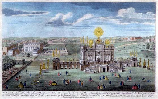 Green Park was readied for a grand fireworks display in 1763 to celebrate the Treaty of Paris, which ended the French and Indian War in North America. The park had attracted firework displays before: