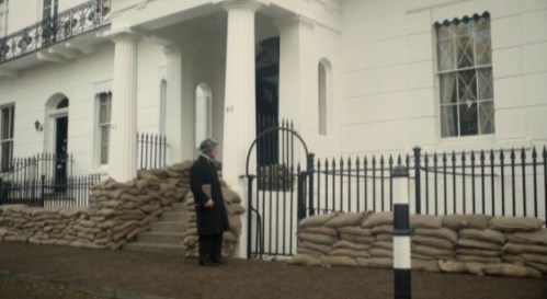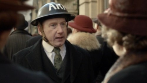 Season Two’s UpDown is a somber series compared to Downton, even with that show’s foray into WW1. At the beginning of Season 2 in UpDown, World War II is about to break wide open. Air raid drills are a fact of life. Houses are sandbagged and Londoners are preparing for war, even practicing wearing gas masks indoors.