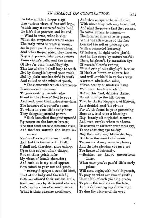 In the following page, Dr. Syntax exhorts his young charges to never swerve from virtue’s path and to take care of their good looks, for “flowing looks display’d to view, of black or brown or auburn hue, and well combin’d in various ways, a certain admiration raise…”: