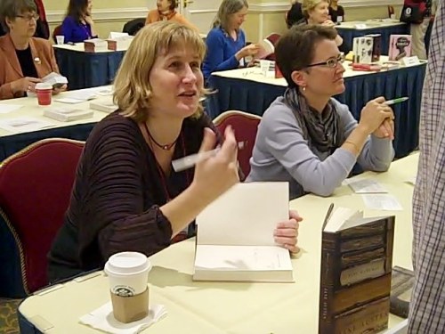 Janine Barchas (l) and Juliette Wells (r) at the Brooklyn JASNA AGM.