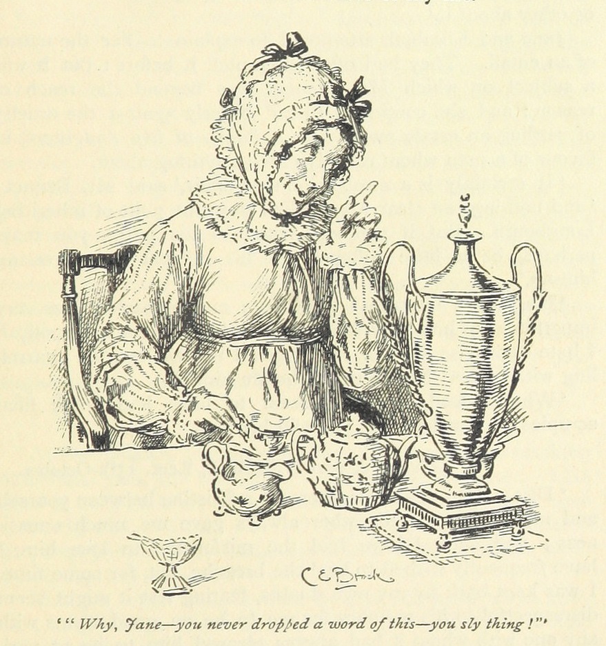 Mrs. Bennet, from the 1985 edition of Pride and Prejudice, illustrated by Hugh Thomson and published by Macmillan & Co