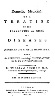 For an intermittent fever, Dr. Buchan recommends ipecac, which will cause the patient to vomit up bile and clean out the system (150). For stomach issues caused by bile, he recommends bleeding, liquids and light foods (such as Mr. Woodhouse’s gruel), and warm baths (290-291).