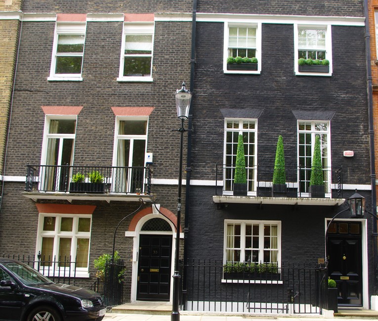 These facades of second rate houses on Hans Place most likely resemble 64 Sloane Street’s facade during the party, especially the unpainted brick of the house on the left.