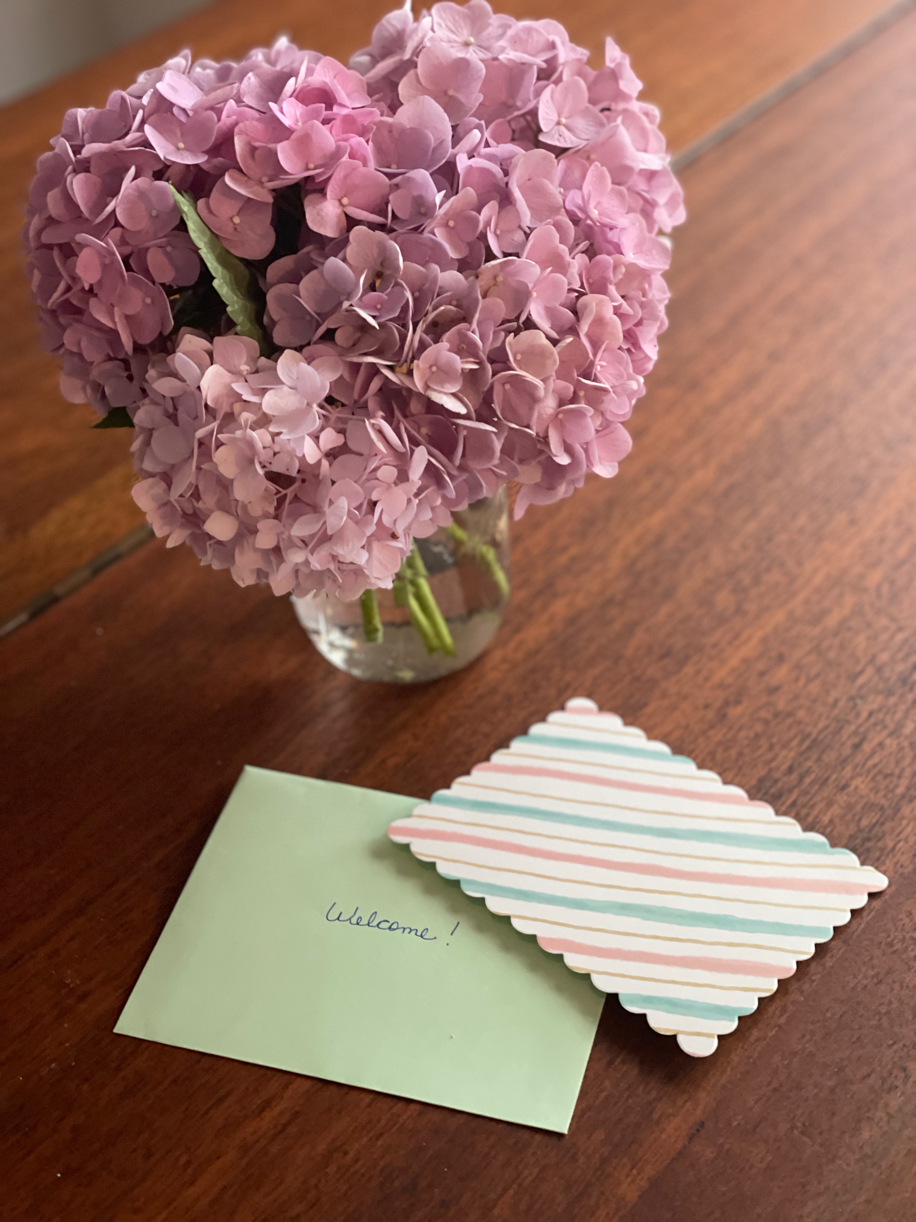 After we moved in, a neighbor left flowers and a card on our front porch! I texted her to say thank you and to let her know I’d love to meet her in person once I felt better, and she immediately asked if she could get anything from the grocery store for me. I needed a certain brand of vitamins and she went right out and got them. What a good neighbor!!