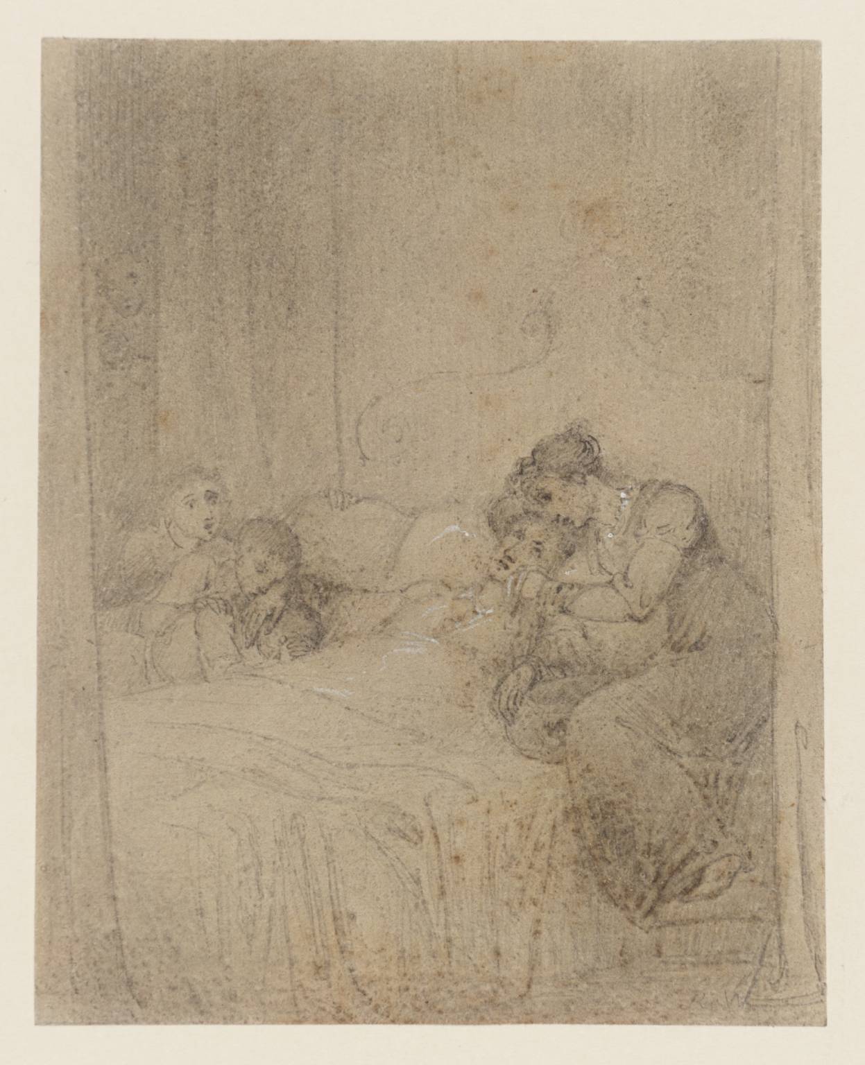 Segmented Sleep: A common Phenomenon Before the Industrial Revolution » g) A Woman Ministering to Another, Three Weeping Children. Young: Night Thoughts null by Richard Westall 1765-1836