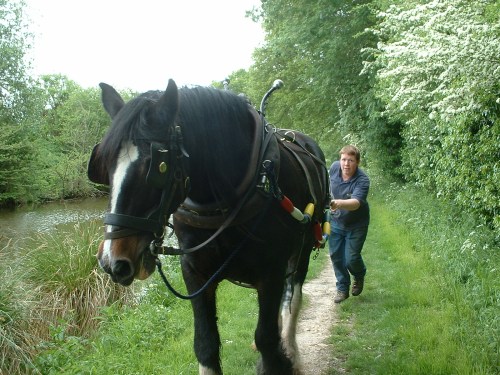 Horse drawing from a towpath on the Kennet and Avon Canal, England, Wikipedia
