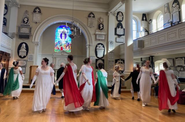 The “Regency Church Service” at Bath Abbey on the first Sunday included Regency church music, and many of us dressed in Regency clothes to attend. Evensong that afternoon was another chance to enjoy a lovely worship service sung by a choir of young people and adults.