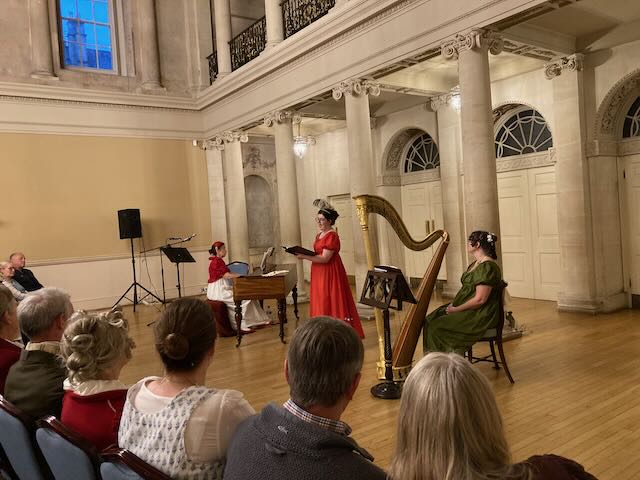 At a lovely concert in the Assembly Rooms, we got to hear music from Austen’s own collection, played on the harp and pianoforte. What a treat that was, especially hearing a harp like the one Mary Crawford enchanted Edmund with.