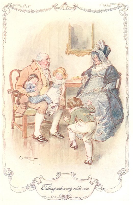 In Emma, Emma’s sister and her husband come to visit for the holidays with their children. They are busy with friends during the mornings, and Mr. Weston insists that they dine with him one eventful evening.