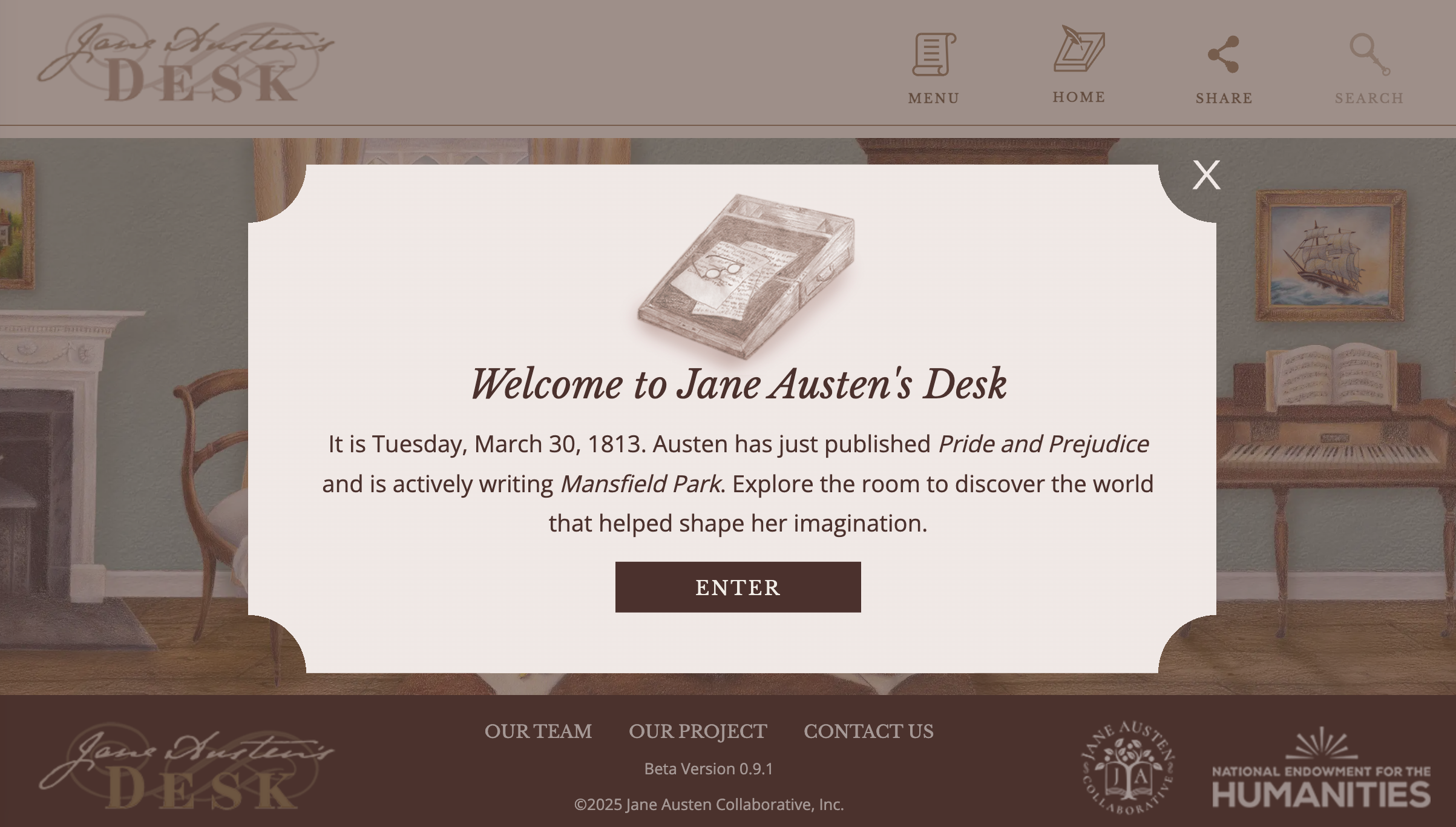 Gentle readers, I recommend you explore Jane Austen’s Desk. The website has not yet been configured for mobile phones, so you’ll need to access it on your computer or tablet.