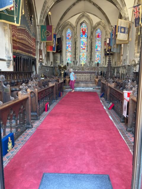 The church offers communion services on Sundays and Wednesdays, and brief Morning Prayer services Tuesday through Friday. Their choir sings Choral Evensong once a month. Rev. Grigg told us that attendance on Sundays is about 50 people, plus those who attend online. The church seats 200.