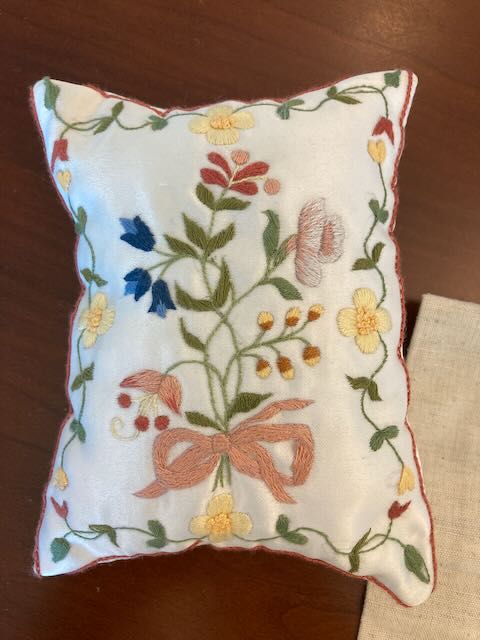 A sample of Jenny Batchelor’s beautiful Austen-period embroidery. She taught two workshops and gave a plenary talk on Transatlantic Domestic Arts at JASP 2025.