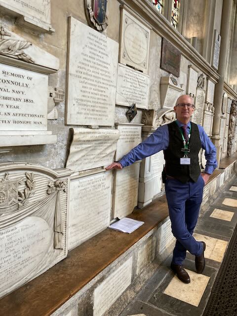 Stephen Herring led special tours of Bath Abbey highlighting memorials to people connected to the Austen family. His wife Jackie Herring wrote Jane Austen’s Bath Abbey, giving us those people’s stories.