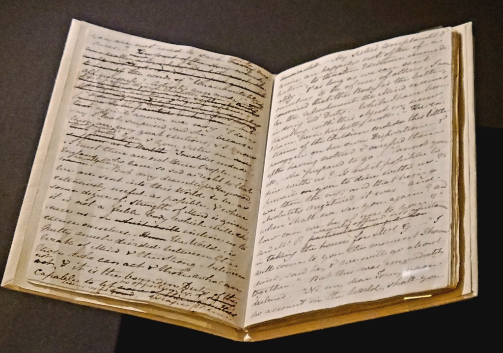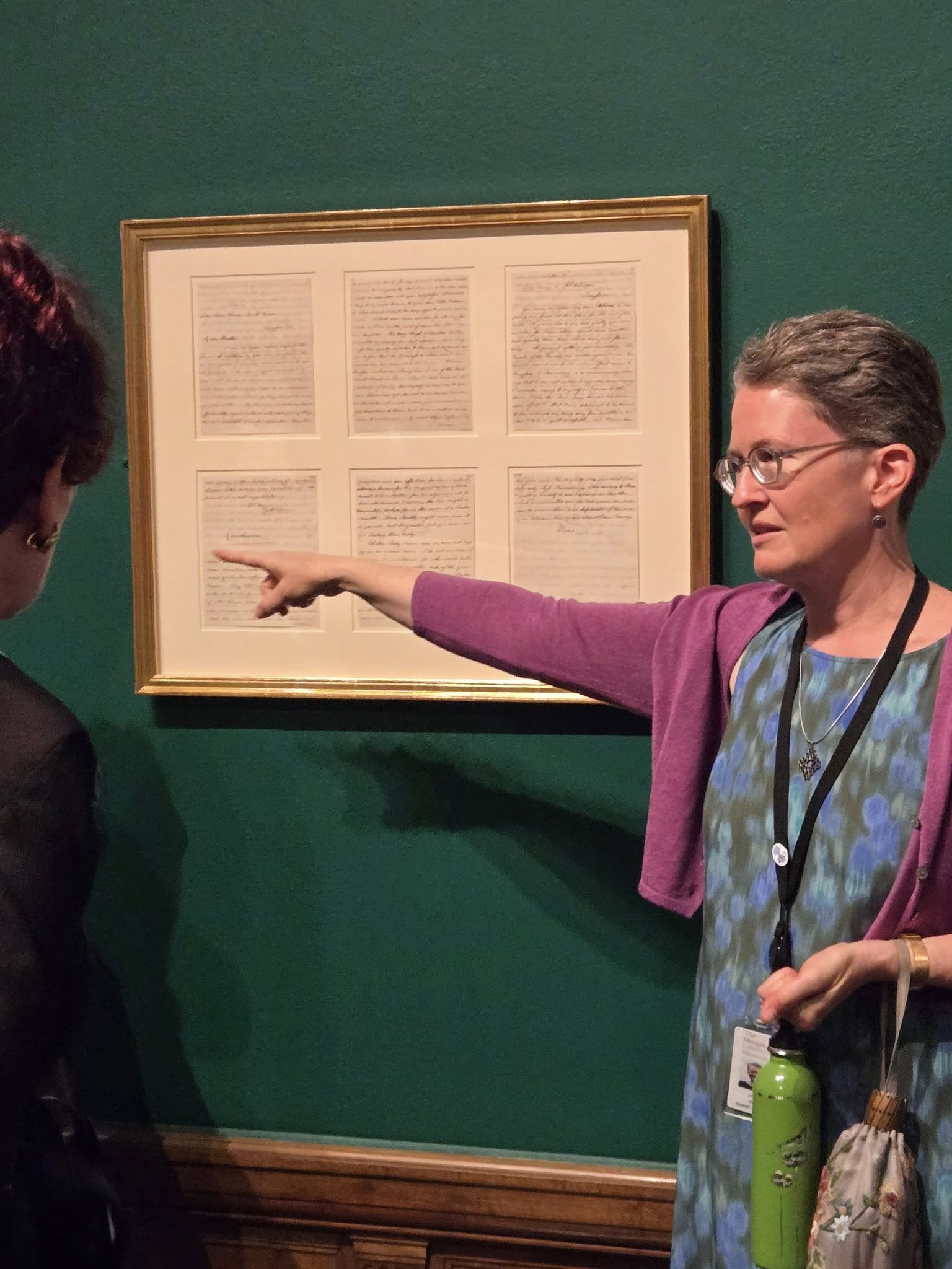 Some highlights were silhouettes of Jane’s parents, some of her music manuscripts, letters, and literary manuscripts, her turquoise ring, first editions of Emma and Mansfield Park, early illustrations of Sense and Sensibility, and much more.