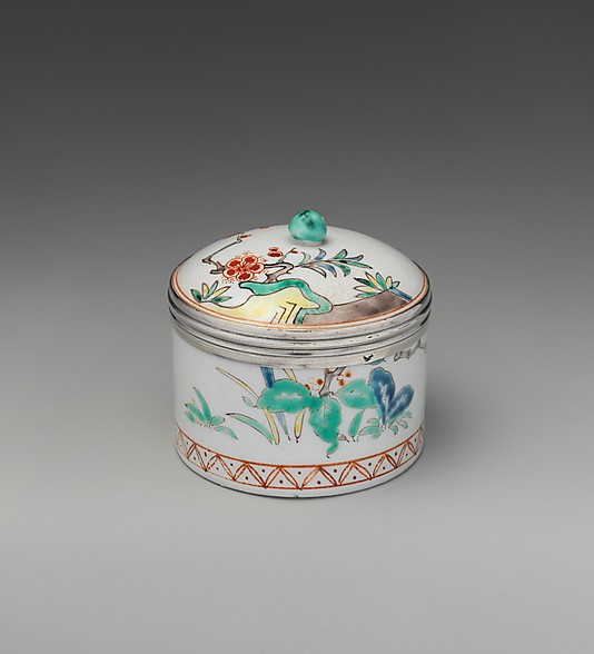 Covered porcelain pomade pot. Mid 18th Century. Image@Metropolitan Museum of Art