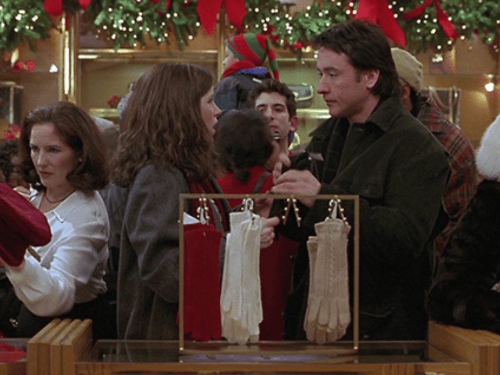 In Serendipity, the two main characters meet in a busy department store at Christmas time. They each grab for the last pair of black gloves and strike up a conversation.