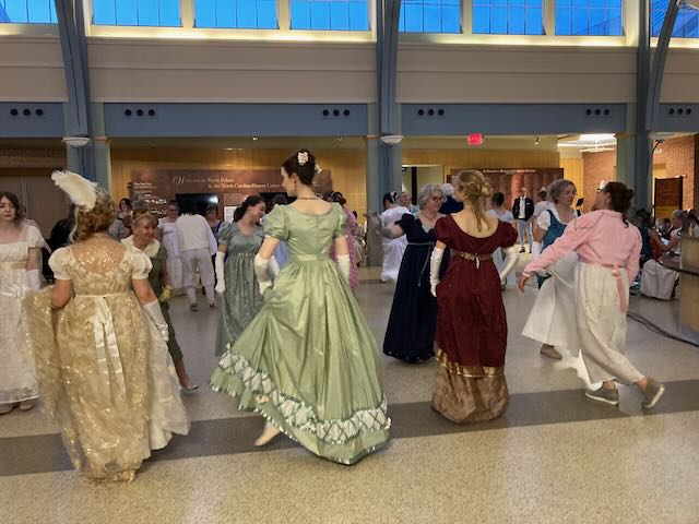 - Multiple fun dance practices with “Mr. Steplively” and a Saturday night Regency Ball, with Regency Games for those who preferred not to dance. (A nice touch was the availability of reasonably priced costumes for those who wanted to rent Regency gowns.)