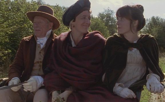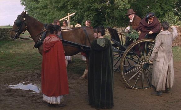 First glimpse of William Elliot’s carriage in Lyme Regis. At the window from left, Anne Elliot and to her right the Musgrove sisters. To the far right, Mary Musgrove nee Elliot.