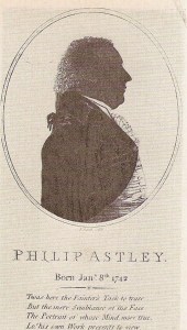 A born showman, Astley combined his horsemanship on the “Little Military Learned Horse” with other entertainments. He scheduled clowns, ropewalkers and gymnasts in his mixed theatre, and soon added other acts, including a pig that could do sums, a strong man called Hercules, and even a horse that could perform card tricks and make a cup of tea (Tracy Chevalier). Between 1768 and 1773 Asley’s equestrian and theatical performances were wildly popular. Horace Walpole wrote in 1773:
