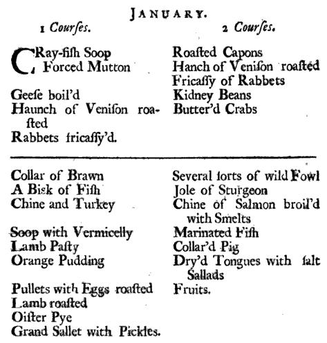 Pare, stone and scald twelve ripe Apricots, beat them fine in a Marble Mortar, put to them six Ounces of double refined Sugar, a Pint of scalding Cream, work it through a Hair Sieve, put it into a Tin that has a close Cover, set it in a Tub of Ice broken small, and a large Quantity of Salt put amongst it, when you see your Cream grow thick round the Edges of your Tin, stir it and set it in again ’till it all grows quite thick, when your Cream is all Froze up, take it out of your Tin, and put it in the Mould you intend it to be turned out of, then put on the Lid, and have ready another Tub with Ice and Salt in as before, put your Mould in the Middle, and lay your Ice under and over it, let it stand four or five Hours, dip your Tin in warm Water when you turn it out; if it be Summer, you must not turn it out ’till the Moment you want it; you may use any Sort of Fruit if you have not Apricots, only observe to work it fine. – Ice cream recipe from The Experienced English Housekeeper by Elizabeth Raffald, 1769, page 228: