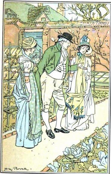 Detail of Catherine (L) and Eleanor (R), Hugh Tomson drawing, 1897, entitled “General Tilney was Pacing the Drawing Room.”