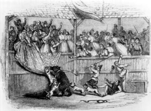 But for every coddled Georgian canine, there were a score of dogs that lived lives of misery as garbage collectors (scavenging what they could off the streets), or were used for cruel sports, such as dog fights or bear baiting. (I have deliberately used a small image, for I cannot think of the unspeakable cruelty such “sport” must have been to the animals.) Dog fights are still popular today, as evinced by the Michael Vick scandals.