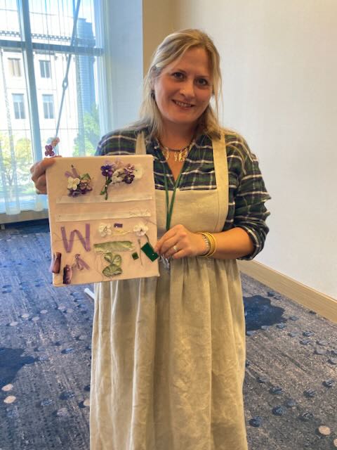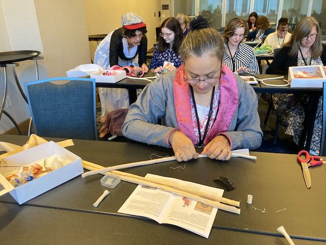Of course when we celebrate Jane Austen, there’s lots of “fun stuff” as well. I got to make ribbon flowers and an evening headdress. Other workshops taught how to make a corset, a handbound book, and a turban.